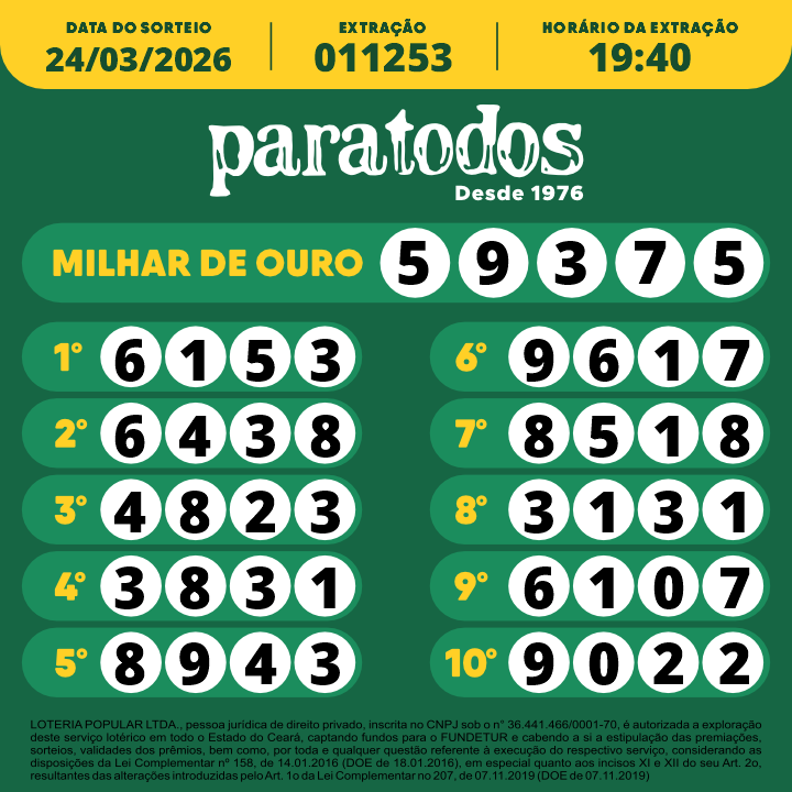 LOTERIA POPULAR LTDA., pessoa jurídica de direito privado, inscrita no CNPJ sob o n° 36.441.466/0001-70, é autorizada a exploração deste serviço lotérico em todo o Estado do Ceará, captando fundos para o FUNDETUR e cabendo a si a estipulação das premiações, sorteios, validades dos prêmios, bem como por toda e qualquer questão referente à execução do respectivo serviço, considerando as disposições da Lei Complementar nº 158, de 14.01.2016 (DOE de 18.01.2016), em especial quanto aos incisos XI e XII do seu Art. 2o, resultantes das alterações introduzidas pelo Art. 1o da Lei Complementar no 207, de 07.11.2019 (DOE de 07.11.2019)