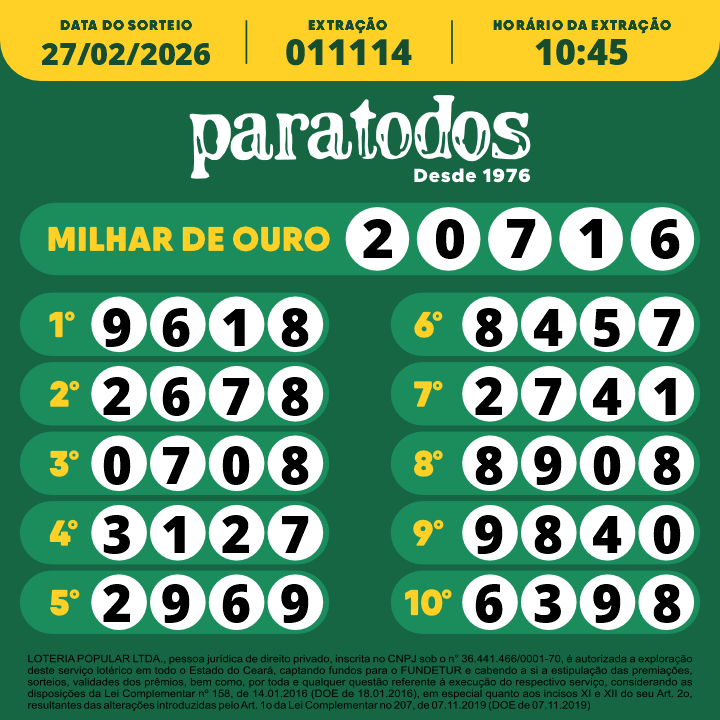 LOTERIA POPULAR LTDA., pessoa jurídica de direito privado, inscrita no CNPJ sob o n° 36.441.466/0001-70, é autorizada a exploração deste serviço lotérico em todo o Estado do Ceará, captando fundos para o FUNDETUR e cabendo a si a estipulação das premiações, sorteios, validades dos prêmios, bem como por toda e qualquer questão referente à execução do respectivo serviço, considerando as disposições da Lei Complementar nº 158, de 14.01.2016 (DOE de 18.01.2016), em especial quanto aos incisos XI e XII do seu Art. 2o, resultantes das alterações introduzidas pelo Art. 1o da Lei Complementar no 207, de 07.11.2019 (DOE de 07.11.2019)