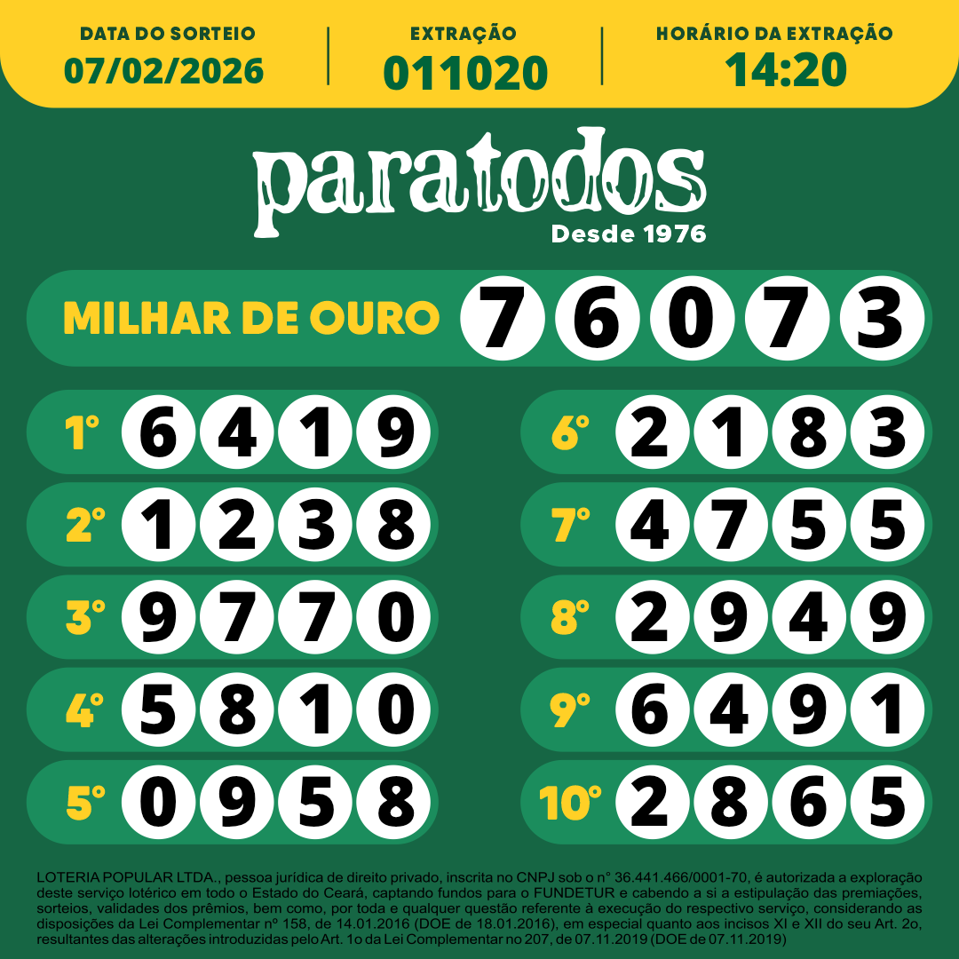 NÚMEROS SORTEADOS – 07/02/2026 – 14:20 Next