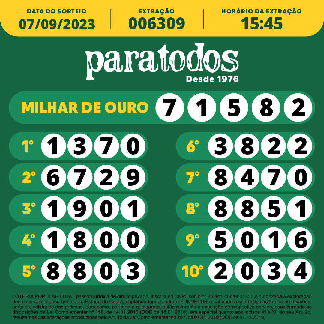 NÚMEROS SORTEADOS – 07/09/2023 – 18:30Next