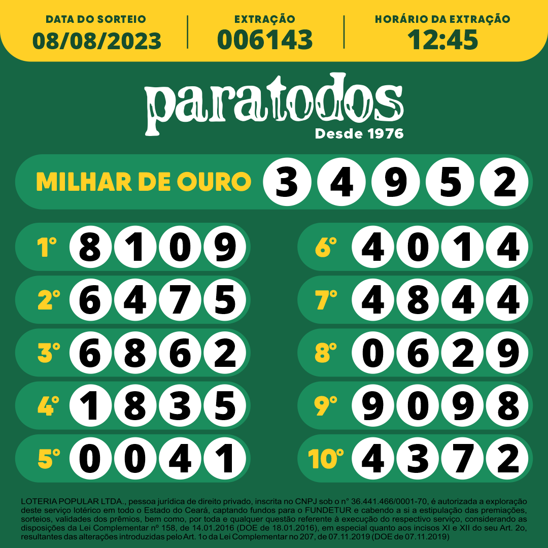 NÚMEROS SORTEADOS – 08/08/2023 – 12:45