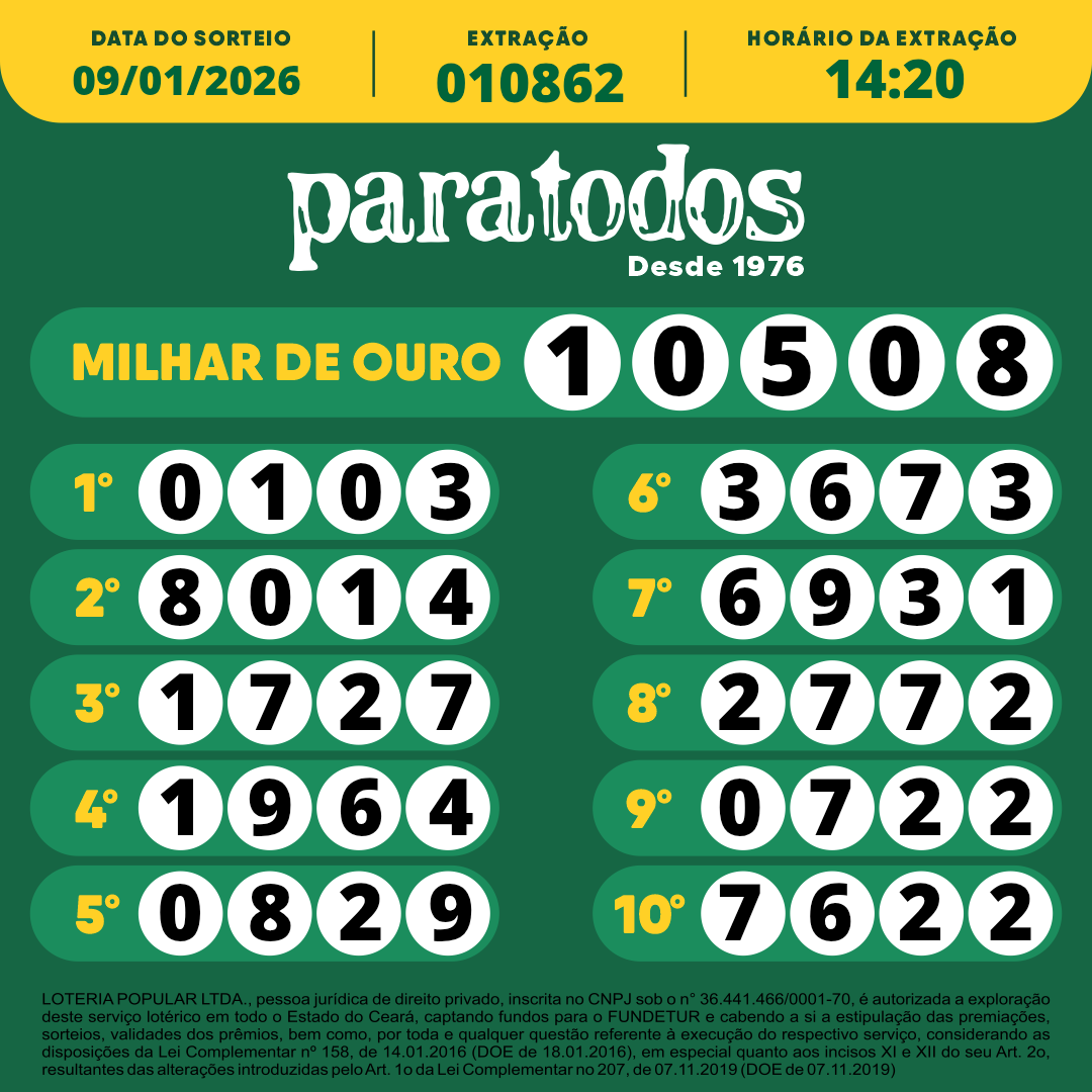 NÚMEROS SORTEADOS – 12/01/2022 – 18:30