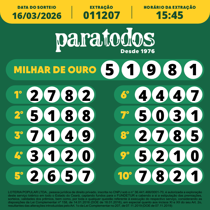 LOTERIA POPULAR LTDA., pessoa jurídica de direito privado, inscrita no CNPJ sob o n° 36.441.466/0001-70, é autorizada a exploração deste serviço lotérico em todo o Estado do Ceará, captando fundos para o FUNDETUR e cabendo a si a estipulação das premiações, sorteios, validades dos prêmios, bem como por toda e qualquer questão referente à execução do respectivo serviço, considerando as disposições da Lei Complementar nº 158, de 14.01.2016 (DOE de 18.01.2016), em especial quanto aos incisos XI e XII do seu Art. 2o, resultantes das alterações introduzidas pelo Art. 1o da Lei Complementar no 207, de 07.11.2019 (DOE de 07.11.2019)