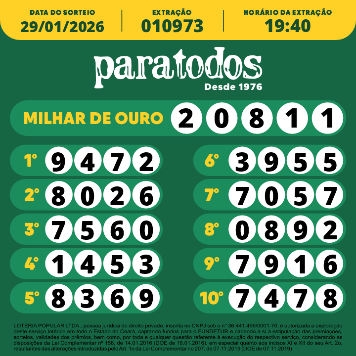 LOTERIA POPULAR LTDA., pessoa jurídica de direito privado, inscrita no CNPJ sob o n° 36.441.466/0001-70, é autorizada a exploração deste serviço lotérico em todo o Estado do Ceará, captando fundos para o FUNDETUR e cabendo a si a estipulação das premiações, sorteios, validades dos prêmios, bem como por toda e qualquer questão referente à execução do respectivo serviço, considerando as disposições da Lei Complementar nº 158, de 14.01.2016 (DOE de 18.01.2016), em especial quanto aos incisos XI e XII do seu Art. 2o, resultantes das alterações introduzidas pelo Art. 1o da Lei Complementar no 207, de 07.11.2019 (DOE de 07.11.2019)