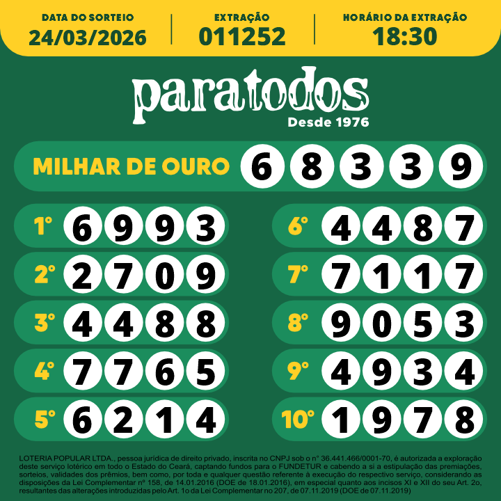 LOTERIA POPULAR LTDA., pessoa jurídica de direito privado, inscrita no CNPJ sob o n° 36.441.466/0001-70, é autorizada a exploração deste serviço lotérico em todo o Estado do Ceará, captando fundos para o FUNDETUR e cabendo a si a estipulação das premiações, sorteios, validades dos prêmios, bem como por toda e qualquer questão referente à execução do respectivo serviço, considerando as disposições da Lei Complementar nº 158, de 14.01.2016 (DOE de 18.01.2016), em especial quanto aos incisos XI e XII do seu Art. 2o, resultantes das alterações introduzidas pelo Art. 1o da Lei Complementar no 207, de 07.11.2019 (DOE de 07.11.2019)