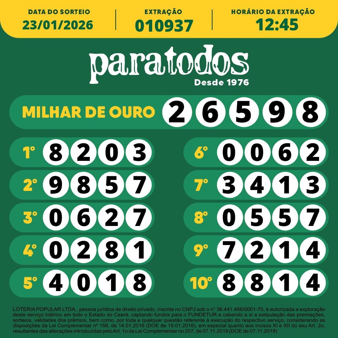 NÚMEROS SORTEADOS – 15/01/2023 – 12:45Next