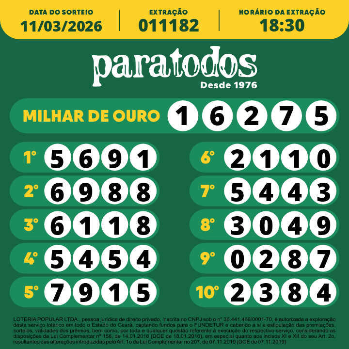 LOTERIA POPULAR LTDA., pessoa jurídica de direito privado, inscrita no CNPJ sob o n° 36.441.466/0001-70, é autorizada a exploração deste serviço lotérico em todo o Estado do Ceará, captando fundos para o FUNDETUR e cabendo a si a estipulação das premiações, sorteios, validades dos prêmios, bem como por toda e qualquer questão referente à execução do respectivo serviço, considerando as disposições da Lei Complementar nº 158, de 14.01.2016 (DOE de 18.01.2016), em especial quanto aos incisos XI e XII do seu Art. 2o, resultantes das alterações introduzidas pelo Art. 1o da Lei Complementar no 207, de 07.11.2019 (DOE de 07.11.2019)