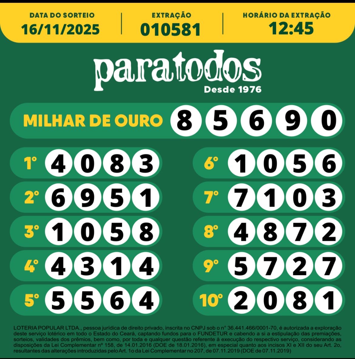 NÚMEROS SORTEADOS – 16/06/2021 – 12h45