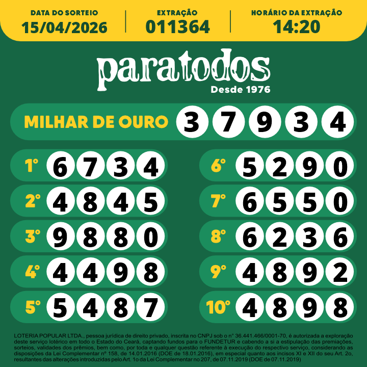 LOTERIA POPULAR LTDA., pessoa jurídica de direito privado, inscrita no CNPJ sob o n° 36.441.466/0001-70, é autorizada a exploração deste serviço lotérico em todo o Estado do Ceará, captando fundos para o FUNDETUR e cabendo a si a estipulação das premiações, sorteios, validades dos prêmios, bem como por toda e qualquer questão referente à execução do respectivo serviço, considerando as disposições da Lei Complementar nº 158, de 14.01.2016 (DOE de 18.01.2016), em especial quanto aos incisos XI e XII do seu Art. 2o, resultantes das alterações introduzidas pelo Art. 1o da Lei Complementar no 207, de 07.11.2019 (DOE de 07.11.2019)