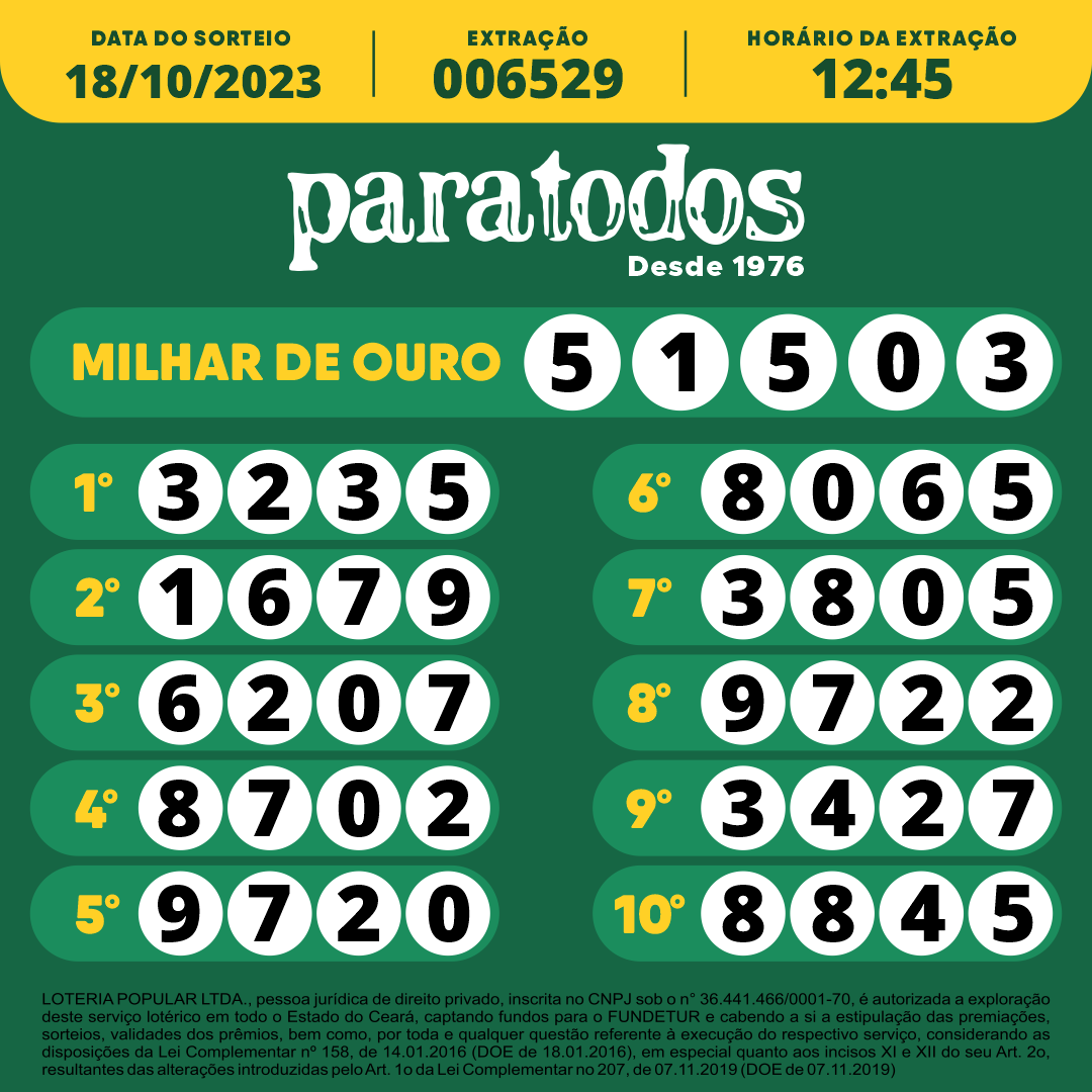 NÚMEROS SORTEADOS – 18/10/2023 – 12:45