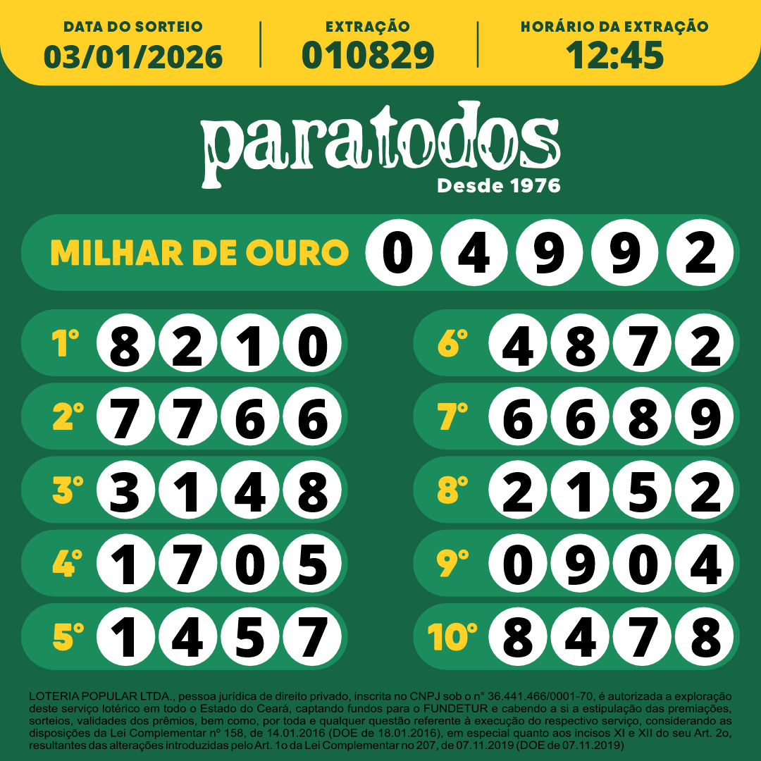 LOTERIA POPULAR LTDA., pessoa jurídica de direito privado, inscrita no CNPJ sob o n° 36.441.466/0001-70, é autorizada a exploração deste serviço lotérico em todo o Estado do Ceará, captando fundos para o FUNDETUR e cabendo a si a estipulação das premiações, sorteios, validades dos prêmios, bem como por toda e qualquer questão referente à execução do respectivo serviço, considerando as disposições da Lei Complementar nº 158, de 14.01.2016 (DOE de 18.01.2016), em especial quanto aos incisos XI e XII do seu Art. 2o, resultantes das alterações introduzidas pelo Art. 1o da Lei Complementar no 207, de 07.11.2019 (DOE de 07.11.2019)
