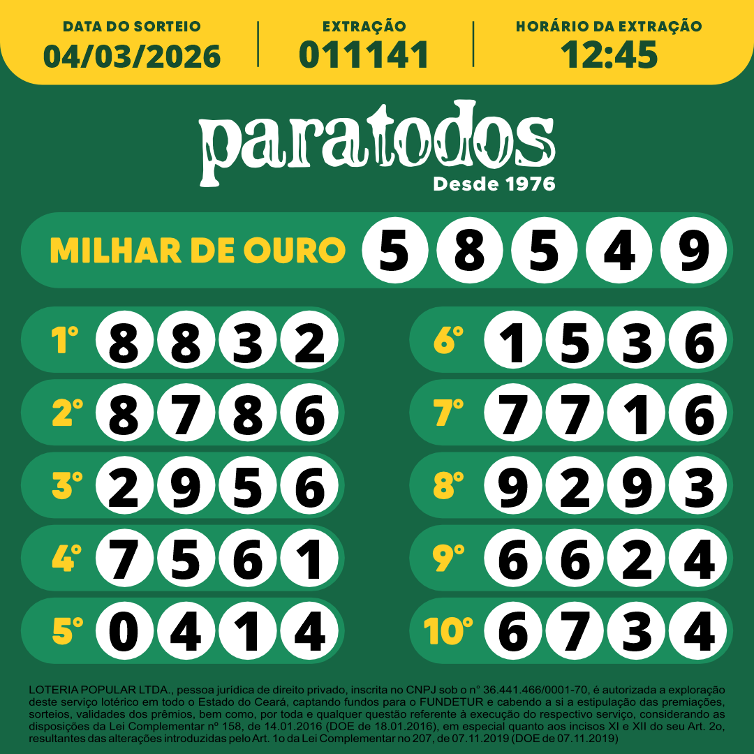 LOTERIA POPULAR LTDA., pessoa jurídica de direito privado, inscrita no CNPJ sob o n° 36.441.466/0001-70, é autorizada a exploração deste serviço lotérico em todo o Estado do Ceará, captando fundos para o FUNDETUR e cabendo a si a estipulação das premiações, sorteios, validades dos prêmios, bem como por toda e qualquer questão referente à execução do respectivo serviço, considerando as disposições da Lei Complementar nº 158, de 14.01.2016 (DOE de 18.01.2016), em especial quanto aos incisos XI e XII do seu Art. 2o, resultantes das alterações introduzidas pelo Art. 1o da Lei Complementar no 207, de 07.11.2019 (DOE de 07.11.2019)