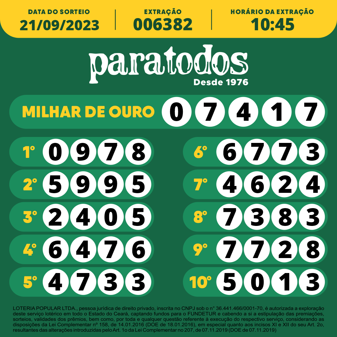 NÚMEROS SORTEADOS – 21/09/2023 – 12:45Next
