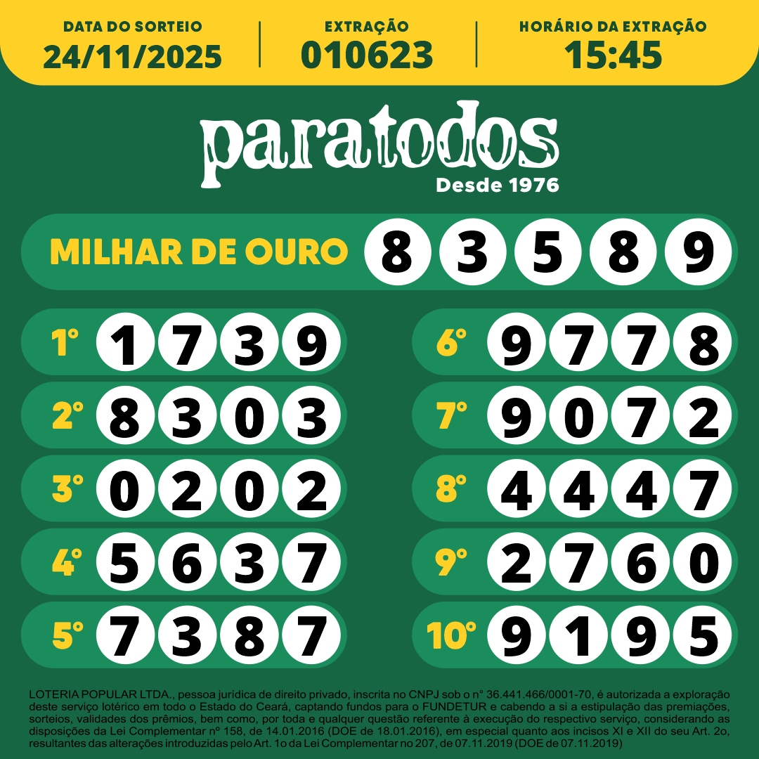 NÚMEROS SORTEADOS – 24/11/2025 – 14:20