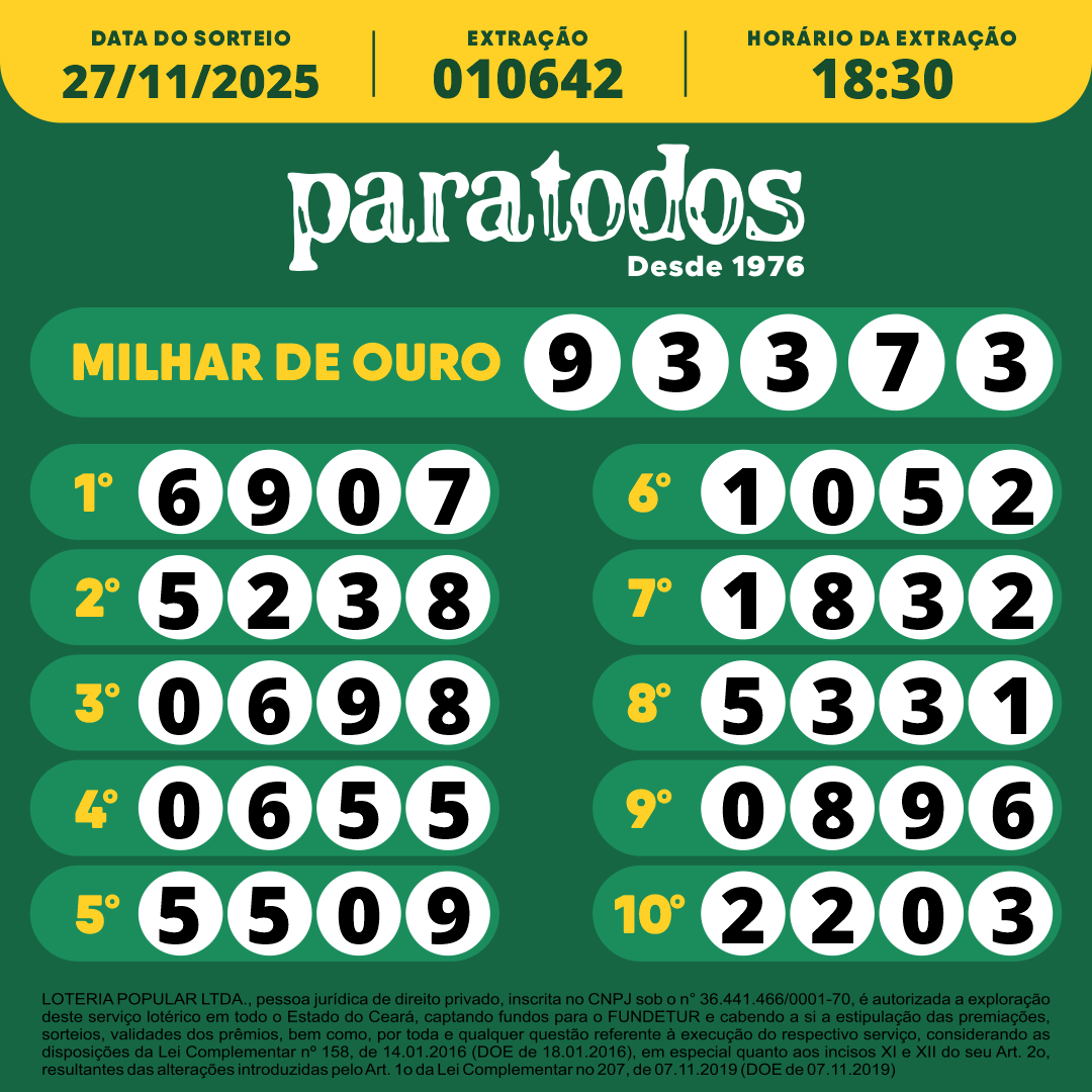 NÚMEROS SORTEADOS – 27/11/2025 – 15:45
