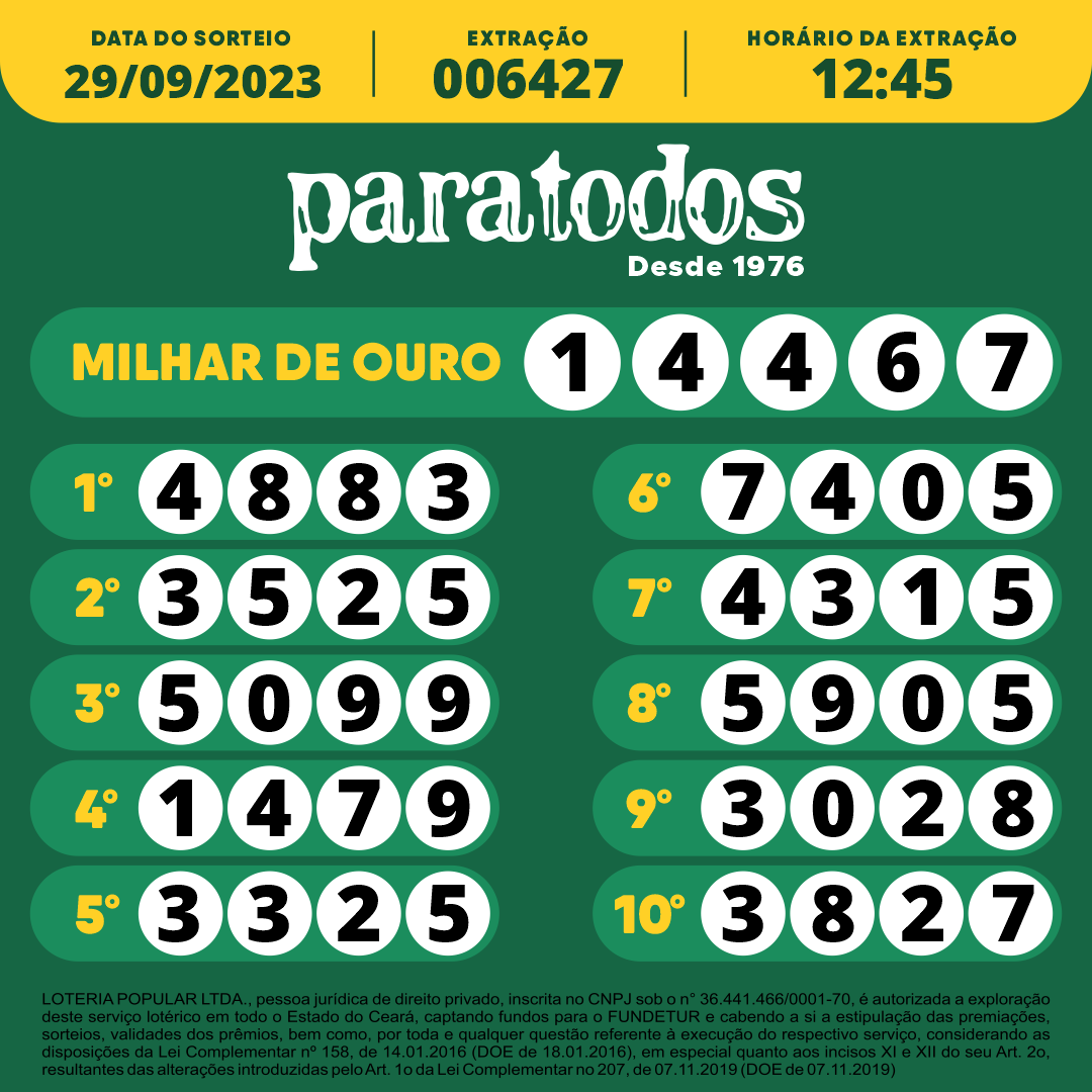 NÚMEROS SORTEADOS – 29/09/2023 – 14:20Next