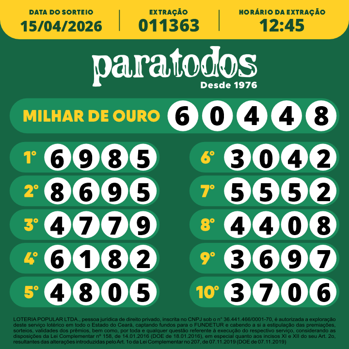 LOTERIA POPULAR LTDA., pessoa jurídica de direito privado, inscrita no CNPJ sob o n° 36.441.466/0001-70, é autorizada a exploração deste serviço lotérico em todo o Estado do Ceará, captando fundos para o FUNDETUR e cabendo a si a estipulação das premiações, sorteios, validades dos prêmios, bem como por toda e qualquer questão referente à execução do respectivo serviço, considerando as disposições da Lei Complementar nº 158, de 14.01.2016 (DOE de 18.01.2016), em especial quanto aos incisos XI e XII do seu Art. 2o, resultantes das alterações introduzidas pelo Art. 1o da Lei Complementar no 207, de 07.11.2019 (DOE de 07.11.2019)