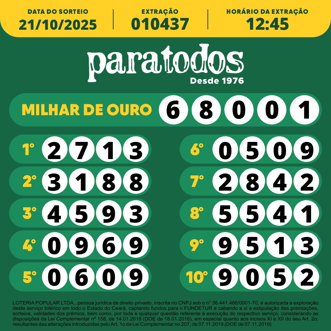 LOTERIA POPULAR LTDA., pessoa jurídica de direito privado, inscrita no CNPJ sob o n° 36.441.466/0001-70, é autorizada a exploração deste serviço lotérico em todo o Estado do Ceará, captando fundos para o FUNDETUR e cabendo a si a estipulação das premiações, sorteios, validades dos prêmios, bem como por toda e qualquer questão referente à execução do respectivo serviço, considerando as disposições da Lei Complementar nº 158, de 14.01.2016 (DOE de 18.01.2016), em especial quanto aos incisos XI e XII do seu Art. 2o, resultantes das alterações introduzidas pelo Art. 1o da Lei Complementar no 207, de 07.11.2019 (DOE de 07.11.2019)